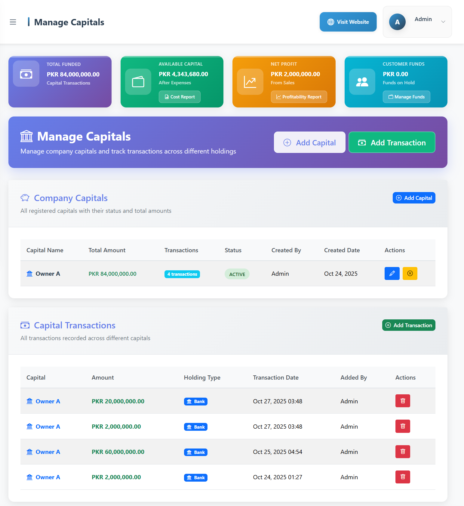 Keep full control of your business capital. Track investments made by the owner, monitor capital flow, and calculate ROI directly from your CRM.