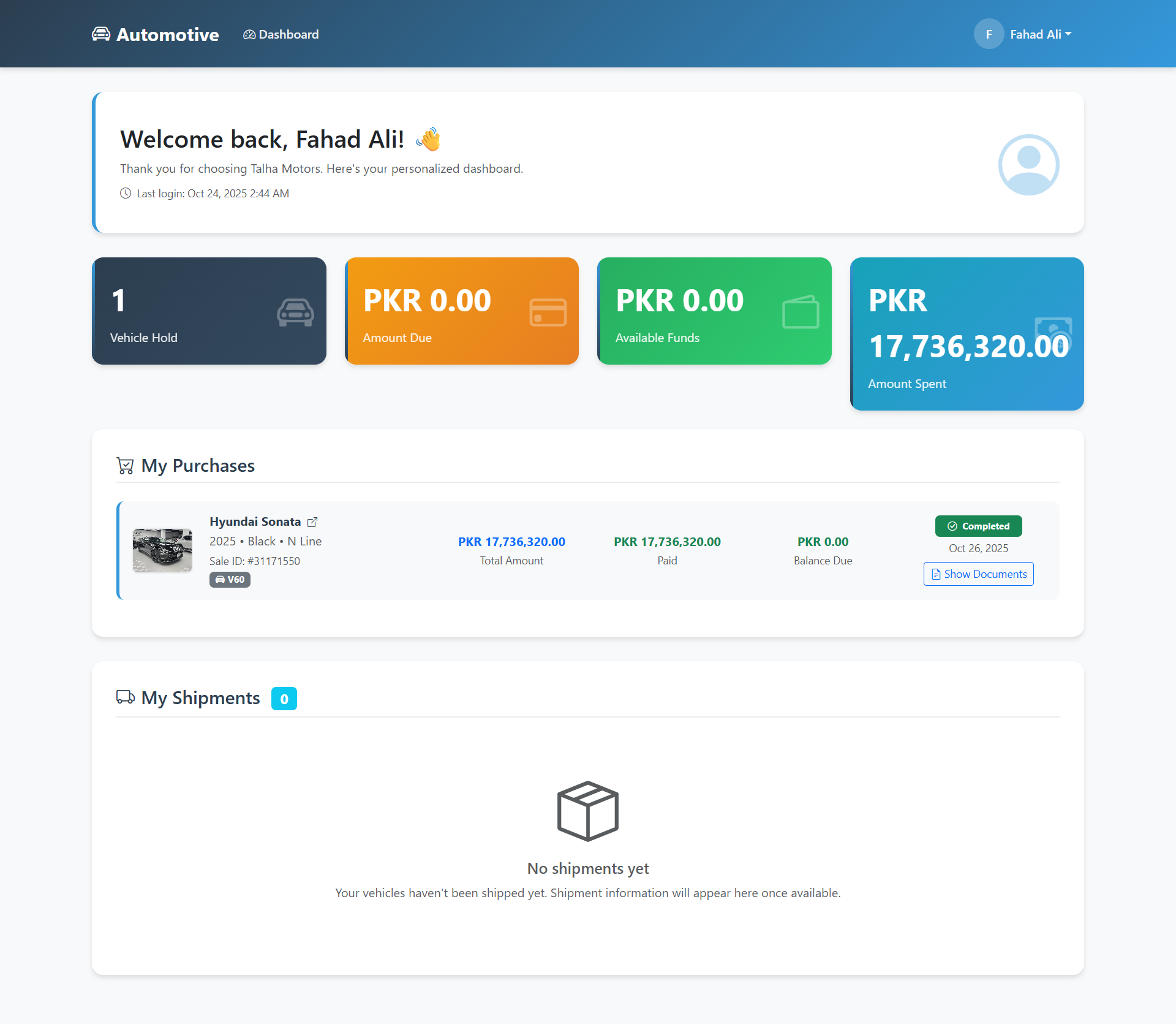Every customer gets a personalized dashboard to view: Deposited funds, Purchased vehicles, Outstanding balance, Vehicle documents and papers. This gives your customers transparency and improves their experience.