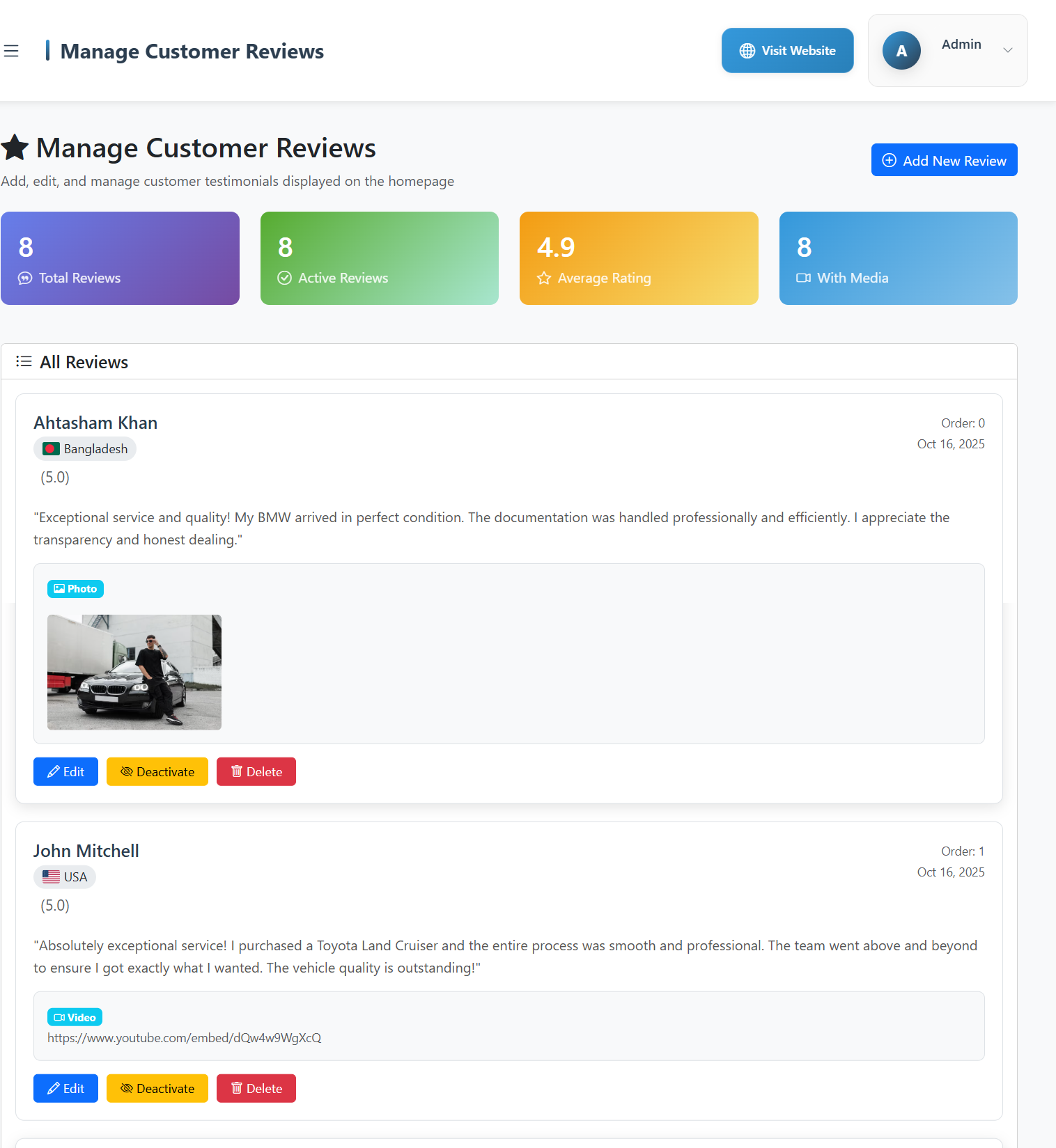 Collect and manage customer reviews from the frontend to build trust and enhance your dealership’s online reputation.