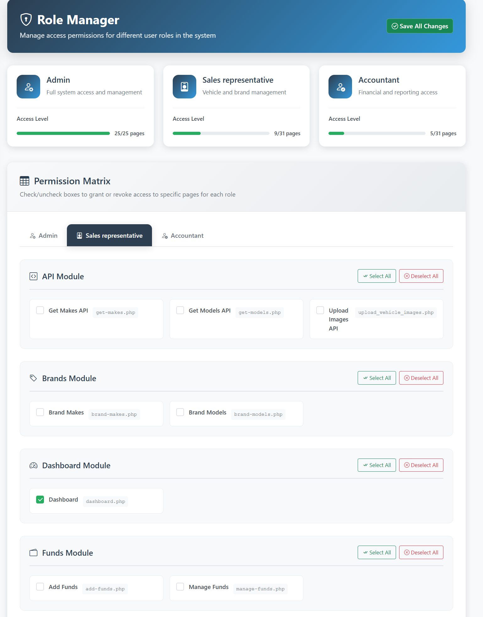 A comprehensive Role Manager lets you define permissions for different staff roles such as Sales Representative or Accountant. Control who can view, edit, or approve data to maintain operational security.